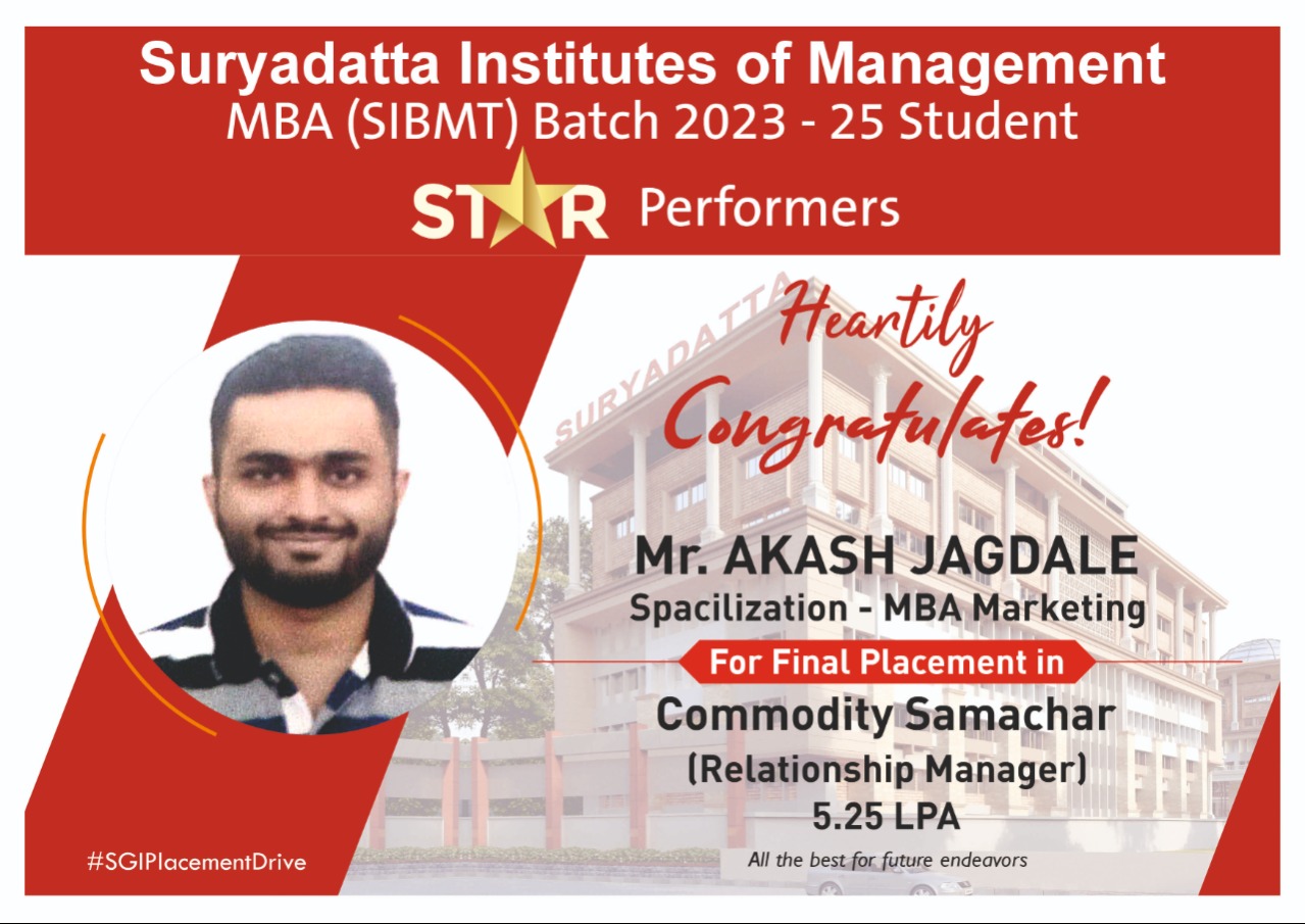 The final placements for the Academic Year 2018-19 at Suryadatta Institute of Management and Mass Communication have witnessed participation from over 25 sectors, prominent among which as BFSI, Agri